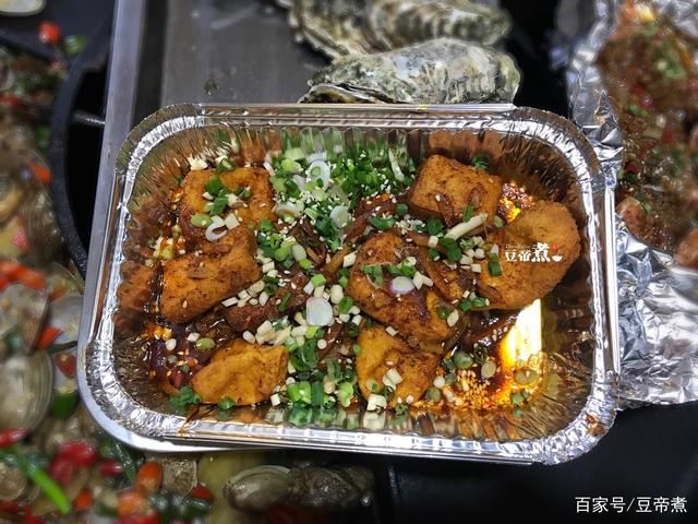包浆豆腐,这一个豆腐菜特别有味道。豆腐经过油炸之后表皮非常香,然后吸收了调制的酱汁和辣椒后非常好吃。吃的时候裹上蒜蓉油辣子及葱碎,味道大了一点但香。
