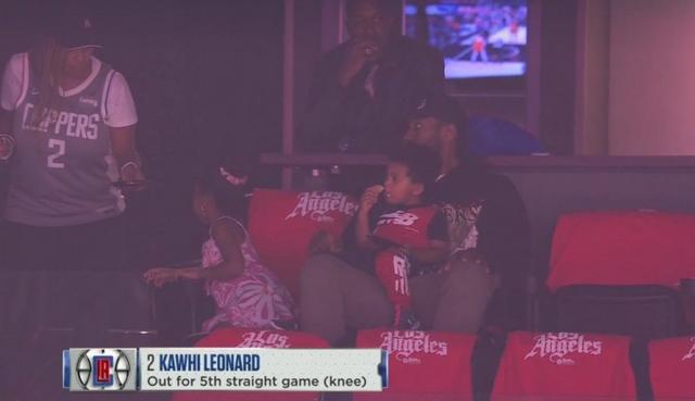 本场比赛,莱昂纳德因膝伤继续缺阵,这是他连续缺阵的第五场比赛,不过这场比赛他与家人一同来到现场观赛。