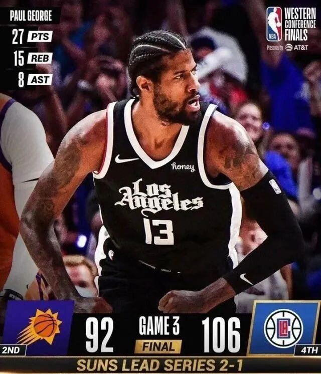 太阳带着2-0领先的优势来到了斯台普斯中心,只要第三场比赛他们再拿到胜利,那就手握3-0领先的赛点,并且在西决历史上还没有球队做到0-3落后大翻盘,所以这场比赛至关重要,赢下了,太阳进军总决赛只会是时间问题!