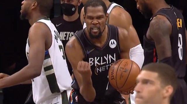 哈登在首场比赛只打43秒钟,就因腿筋拉伤提前退场,并接连缺席了接下来的三场比赛。屋漏偏逢连夜雨,欧文在接下来的G4对决中不幸扭伤,逼得哈登带着伤病继续出战了接下来的天王山之战以及最后的抢七大战。也就是说,双方在本次季后赛的较量中,只有杜兰特和字母哥这两大巨星球员,能够打满7场比赛。都知道杜兰特很强,在天王山之战中,也打出了他死神的气势,交出49+17+10的创纪录数据。