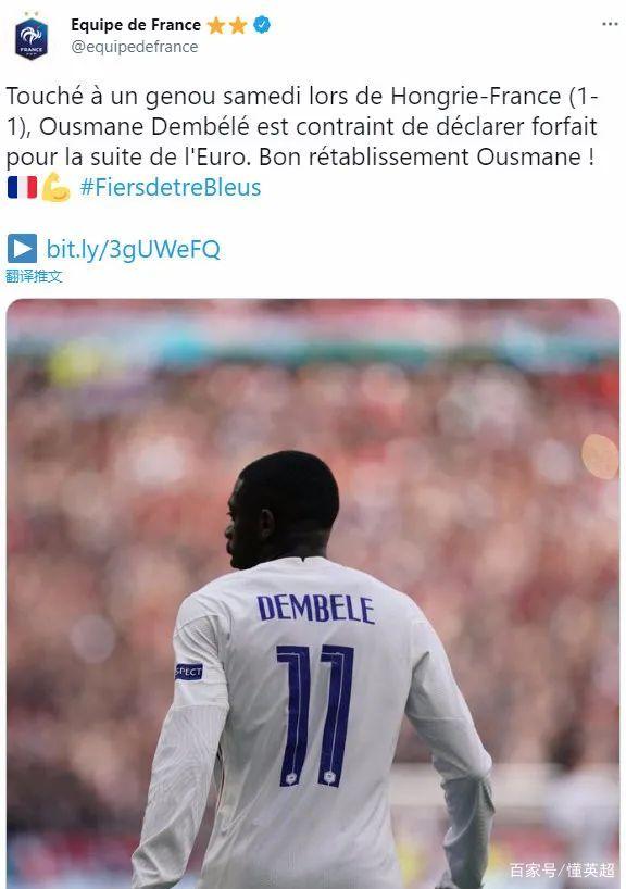 不久之前,法国国脚奥斯曼·登贝莱因为右膝二头肌肌腱错位,已经正式告别欧洲杯,甚至还要休战4个月,