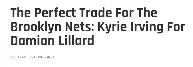 为此,美媒《FW》也支招篮网,可以尝试围绕欧文与利拉德打造交易,升级自家的三巨头配置。