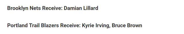 潜在交易方案:篮网队送出欧文+布朗,从开拓者队得到利拉德。