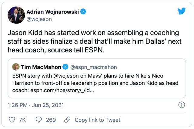 据美媒ESPN记者阿德里安-沃纳罗斯基的说法,独行侠正式敲定聘请杰森-基德担任球队主教练,而且基德已经开始组建自己的教练组。