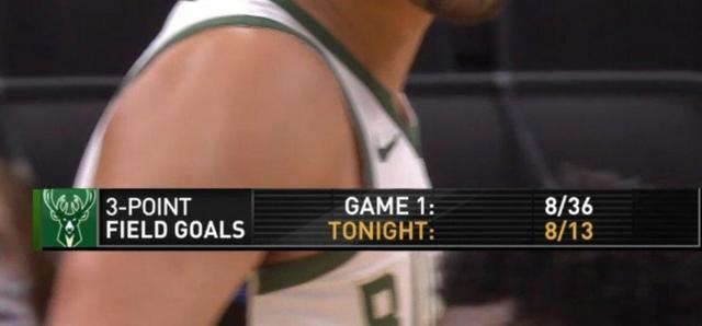 本场比赛第二节,雄鹿的三分已经13投8中,而他们G1全场三分则是36投8中,球队也在G1不敌对手。