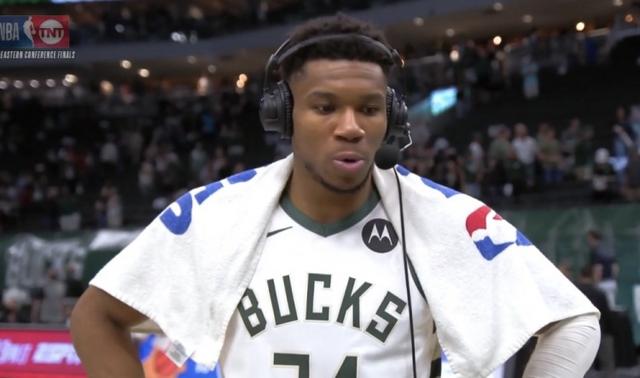 直播吧6月26日讯 雄鹿狂虐老鹰1-1扳平大比分,赛后字母哥在场边接受了采访。