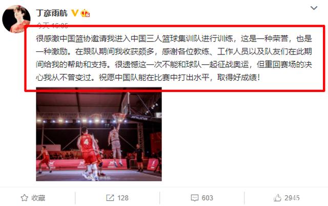 根据各方媒体人的爆料,对丁彦雨航来说,他落选了中国三人篮球集训队的最终目的。这样的消息,其实并不意外。对丁彦雨航来说,三年没有打职业篮球的比赛了,他个人的状态,肯定是存疑的。之后,这也被确认了,“CBA明星球员丁彦雨航确认将离开中国三人篮球集训队。丁彦雨航因伤缺席上赛季比赛,为备战奥运会,他入选了中国三人篮球集训队,表现优异,但还是未能入选最终名单。祝福小丁,希望下赛季CBA看到你。”