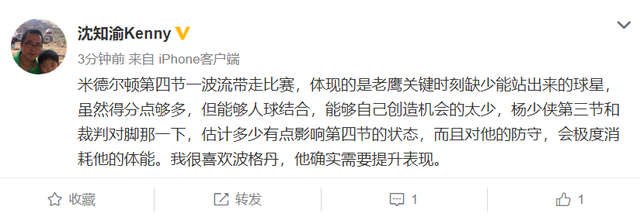属于米德尔顿的一个夜晚,当然特雷杨在第三节最后时刻的意外崴脚也是一个转折点,但是他真的太累了,一个人无法撑起全队,除非特别出色的发挥,沈知渝也提到,老鹰现在得分点多,但自己创造机会的得分点较少,这也是他们面对的最大问题,要想解决,确实难度不小。