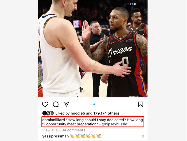 利拉德转发的文字,很大程度上反映了他内心的渴望,今年是属于保罗的时刻,而属于利拉德的时刻什么时候才会到来?今年季后赛被掘金淘汰后,利拉德赛后发文:“我还要在这里奉献多久?还要多久机会才能到来?”
