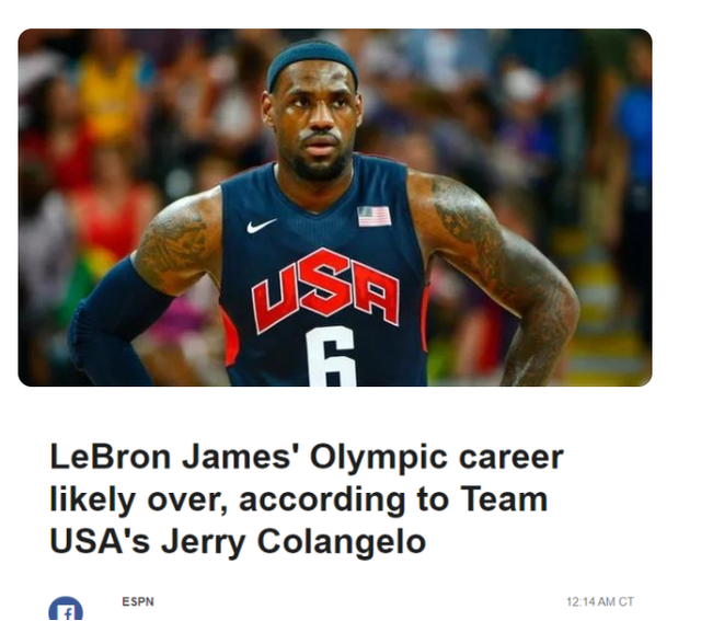 根据消息,美国男篮总经理杰里-科朗吉洛在接受采访时表示,詹姆斯可能不再会为美国男篮出战了。原因其实我们都能够猜到,就是身体大不如前了。他已经不再年轻,自从加盟湖人之后,各种伤病就开始侵袭他的身体。我们再也不能在奥运会上看到詹姆斯的表演了。虽然他的缺席并不会使得美国队丢掉总冠军,但这个决定,其实是在告诉我们,属于詹姆斯的时代真的已经结束了。