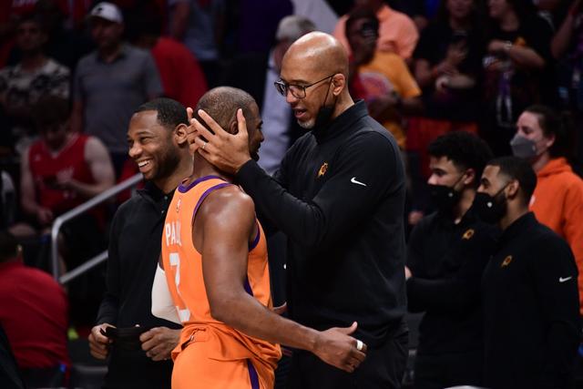此前10年未曾打进过季后赛,进入季后赛后,连续淘汰上赛季分区决赛的两支球队,一度季后赛9连胜,保罗带领这支太阳在不断刷新队史,不断刷新NBA历史!布克说:“他是我们的绝对领袖,我知道克里斯希望捧起总冠军奖杯,我们都希望看到对方取得成功,我们希望团队取得成功!”布克和艾顿这两位球员,生涯第一次季后赛之旅,就是总决赛,正如艾顿所言:我生涯最开心的事情,就是遇到了克里斯保罗。保罗最开心的事情不是摸到总决赛地板,而是被火箭抛弃后,他又前进了一大步。