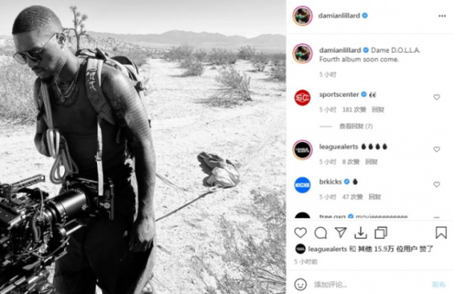 这其中,开拓者当家球星利拉德也是一位著名音乐人,他通过社交媒体晒照,还正式宣布,“Dame D.O.L.L.A.(利拉德艺名)第四张音乐专辑即将出炉!”