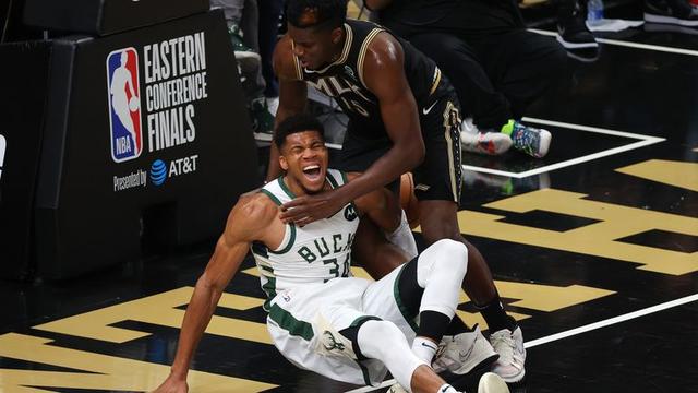 字母哥在对阵老鹰东决系列赛第4场比赛遭受左膝盖的严重伤病,并且受伤之后的字母哥就无法出战剩余比赛时间,最终雄鹿也输掉这场比赛并且被老鹰逼入天王山之战。