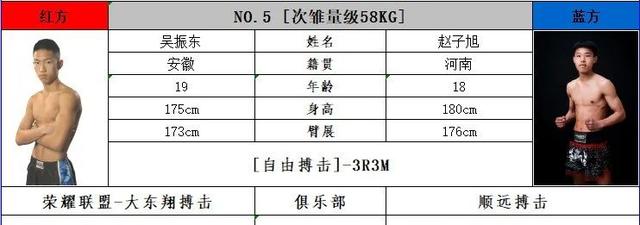 荣耀军团第五代、第六代运动员银腰带之争,同门兄弟郭梦飞、荀震争夺67KG银腰带,郭梦飞打法沉稳、腿法进攻精准;荀震打法灵活、拳法进攻勇猛,谁胜谁负难以预料。