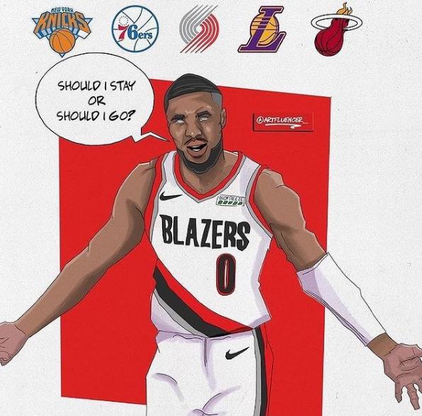 自从开拓者和湖人双双回家钓鱼后,关于利拉德“离队”的传言甚嚣尘上。有传言,自然就有下家,湖人便是流言蜚语中的一员。