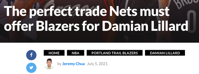 最后需要谈及的是,美媒杰里米-蔡在一篇文章中建议篮网将欧文和沙梅特摆上货架并且推动涉及达米安-利拉德的交易: