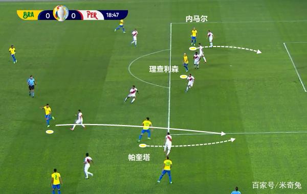今天半决赛上巴西的唯一进球,就是内马尔一马当先杀入禁区,随后在对手3人包夹下突然起速过人后为帕奎塔送出准空门妙传,让后者轻松得分。