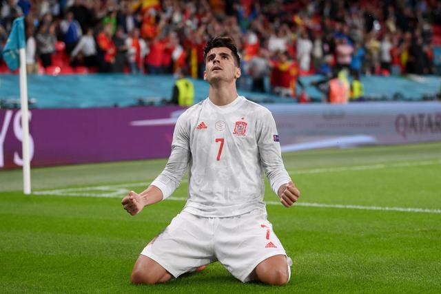 莫拉塔也用滑跪庆祝回应了小基耶萨,这是他本届欧洲杯的第3球,而且有机会挑战C罗争夺金靴。