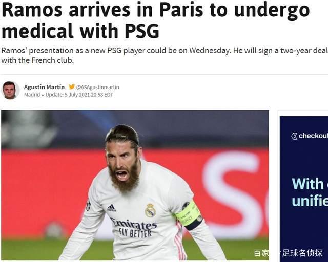 阿斯报消息,拉莫斯将在当地时间周二接受巴黎的体检,然后他将和法甲豪门签下一份两年合同。