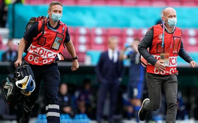 在B小组首轮芬兰与丹麦队的比赛中,埃里克森猝倒在了哥本哈根公园球场的草坪上,场面令人揪心。在经过丹麦队长克亚尔的紧急处理后,由6名急救人员组成的医疗小组火速入场,对埃里克森进行专业抢救。在埃里克森被担架抬离球场时,他已经恢复了意识,医疗小组功不可没。