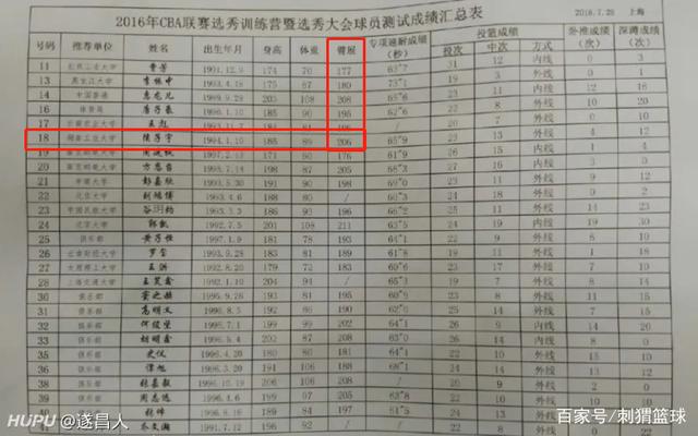 在2016年的选秀训练营体测环节中,侯子宇有一项数据惊人,身高1米85,臂展长达2米06...
