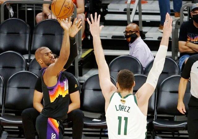随着拖金斯迪克度假酒店球馆终场哨声响起,总决赛第一场比赛落下帷幕,太阳118-105战胜雄鹿,大比分1-0暂时领先雄鹿!在本场比赛当中,雄鹿核心字母哥在因伤缺席了两场比赛之后迎来了复出,在今天贡献了20分17篮板4助攻2抢断的大号两双数据,但是保罗第三节单节16分的大爆发,雄鹿还是没有能够撑住,最终太阳拿到了第一场比赛的胜利。