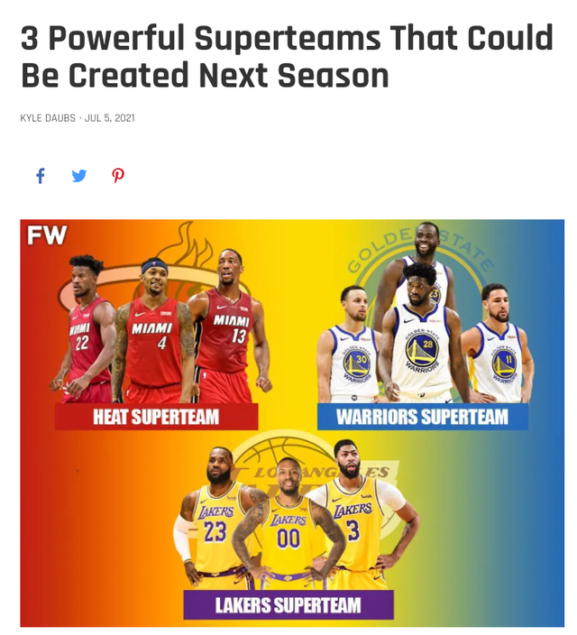 至于湖人和勇士等球队都可能在今年休赛期完成重磅补强并且成为超级强队,甚至会有威胁篮网的实力。那么到了下赛季哪几支球队最可能打造超级强队阵容?美媒凯尔-杜博斯列出以下3支球队: