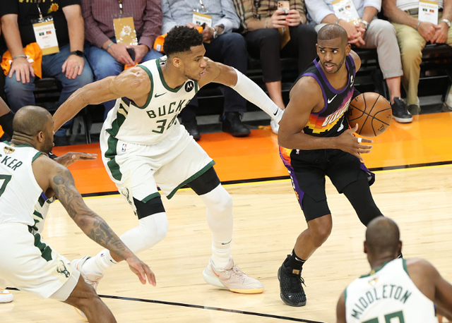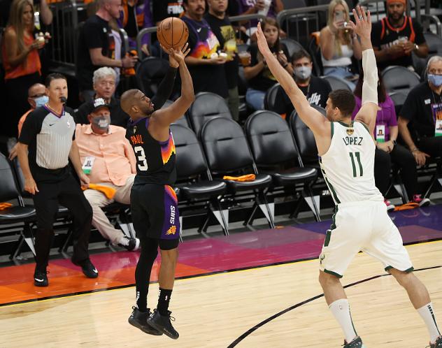 虽然本场比赛是保罗16年职业生涯首次站上总决赛的舞台,但是他丝毫没有不适应感和陌生感,面对对于总冠军志在必得的雄鹿队,保罗展现出了一名老将的领袖气质和能力,面对老队友塔克的严防死守,保罗全场比赛都在用自己的传球梳理着太阳队的进攻,6人得分上双是太阳队能够取得开门红的重要原因之一。