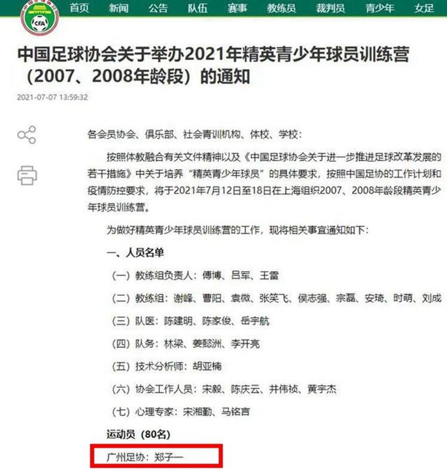 根据中国足协最新消息,2021年全国U14精英球员训练营即将开营(国少U14训练营),80名顺利入选球员的名单也得到公布,其中排在第一位的郑子一备受关注,他就是国足名宿郑智的儿子。据了解,本次训练营招收的都是2007年到2008年出生的孩子,最大的不过13岁,正是开始接受专业训练的最佳年纪,说不定再过10年,这80名天才小将中就会有人成为国足队员,而人们最期待的当然是郑子一,毕竟他爸爸是国足巨星,大家都希望他能子承父业。