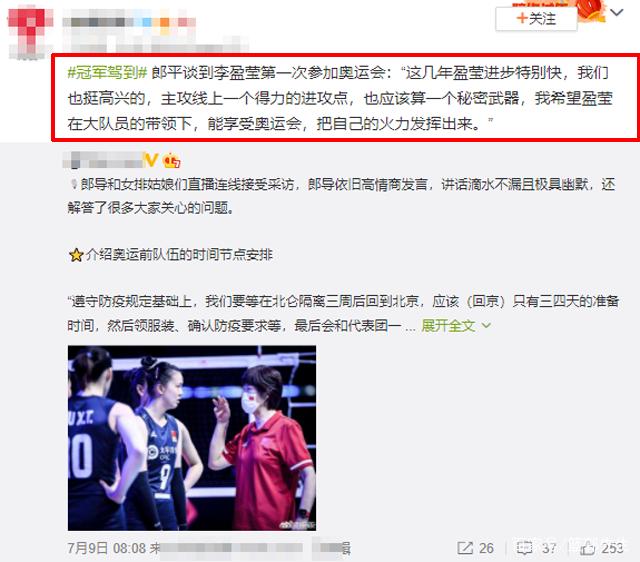 “小朱婷”首次参加奥运会,郎平给出超高评价:她是一个秘密武器。这样的点评,证明了郎平对李盈莹的喜欢。作为球迷,继续关注吧,看看李盈莹在奥运会的舞台上,到底会有什么样的发挥吧。