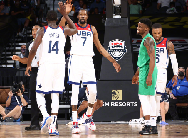 其实美国队得庆幸,丁威迪也是尼日利亚籍的球员,但他没有代表自己国家参加奥运会!如果真的参加,那尼日利亚队的阵容堪称顶级豪华了,并不比美国梦之队弱多少。至于丁威迪为何没有参加,在热身赛结束后丁威迪也发推说:“这一刻,真希望我效力于尼日利亚”,问他为何没有去,丁威迪:“下一届奥运会,2020有新冠,今年又是自由市场。”意思是丁威迪本打算去的,但因为新冠所以没有去,刚好今年又是他的自由市场,所以干脆下一届奥运会去参加。