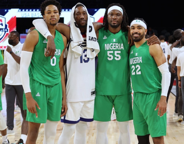 但这其实并不是尼日利亚的最强阵容!这个曾经被美国梦之队吊打的国家队,现在已经有资格当梦之队的对手了,除了三位登场的效力尼日利亚的球员,还有不少NBA球星也是尼日利亚籍,只是因为各种原因没有代表国家出战,不然美国梦之队比分可能输的更多。譬如在这场比赛里,效力美国队的巴姆·阿德巴约,其实也是尼日利亚籍贯,同时也是热火球员,只不过他没有参加国家队罢了。在赛后,四位球员还合影一张,一场比赛里能同时出现4位热火球员,同时还是尼日利亚籍的球员,也是世上罕见了。