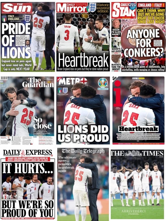 《镜报》:心碎!勇敢的英格兰输在了点球上,但他们已经是国家的骄傲。