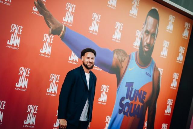 直播吧7月14日讯 由湖人球星詹姆斯主演的《空中大灌篮2》昨日举办了首映典礼,有参演该电影的勇士球星克莱-汤普森现身斯台普斯中心参加了典礼。