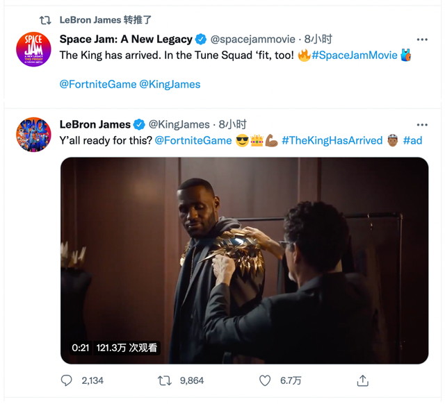 另一方面,勒布朗-詹姆斯近日一直专注于《空中大灌篮2:新传奇》的宣传工作,例如在自己社交媒体上,詹姆斯不到5小时就发布+转发7条关于自己新电影的消息,甚至连个人社交媒体上头像都改为电影的宣传海报:
