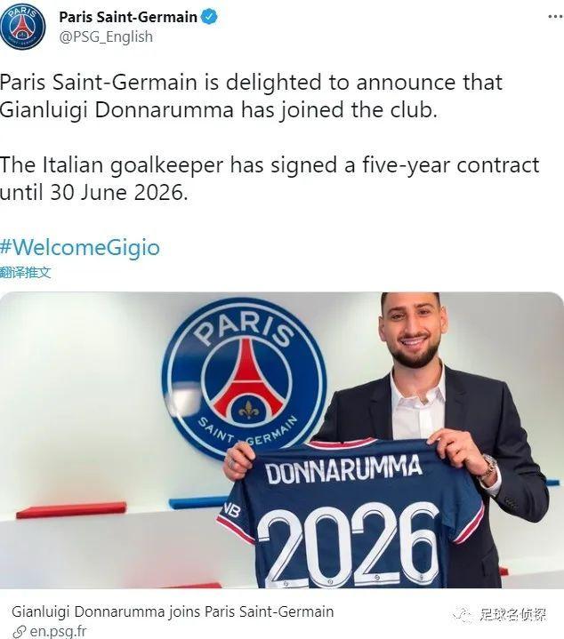 官方:巴黎宣布从米兰免签了唐纳鲁马,这名门将签下了一份2026年到期的5年合同。