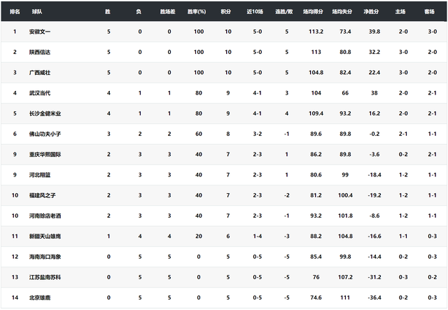 新疆天山雄鹰 94-102 重庆华熙国际:这场对决打得非常激烈,新疆天山雄鹰在上半场占据优势,领先13分进入下半场;可在第三节被全面压制,大好局势被直接反压,以致最终输掉比赛。此役之后,新疆天山雄鹰依然只有1个胜场,排名仅比三支全败战绩的球队更高。重庆华熙国际综合战绩亦好不到哪去,2胜3负同样到积分榜后面区域,想要冲击季后赛还需要更多努力。