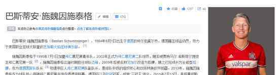 施魏因斯泰格施魏因斯泰格,全名巴斯蒂安·施魏因斯泰格(Bastian Schweinsteiger,1984年8月1日-),是一名德国足球运动员,现在效力于德甲球队拜仁慕尼黑,司职前腰,亦可出任左右中场及后腰,或左后卫。