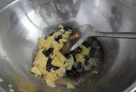 4 锅中放油倒入鸡蛋液炒熟盛出