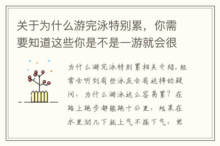 2.《为什么游完泳特别累看这里!自由泳比蛙泳累多了?动作容易变形?你需要换一种训练方式》仅供读者参考,本网站未对该内容进行证实,对其原创性、真实性、完整性、及时性不作任何保证。