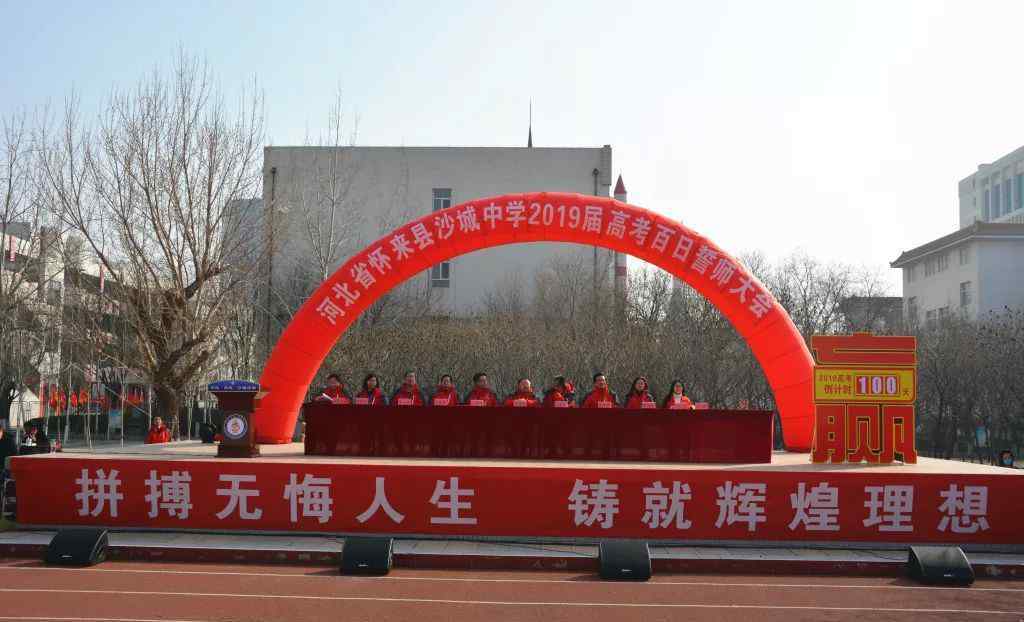 今年1月21日早上十点,沙城中学在运动场隆重召开2019届今年高考百日誓师交流会。