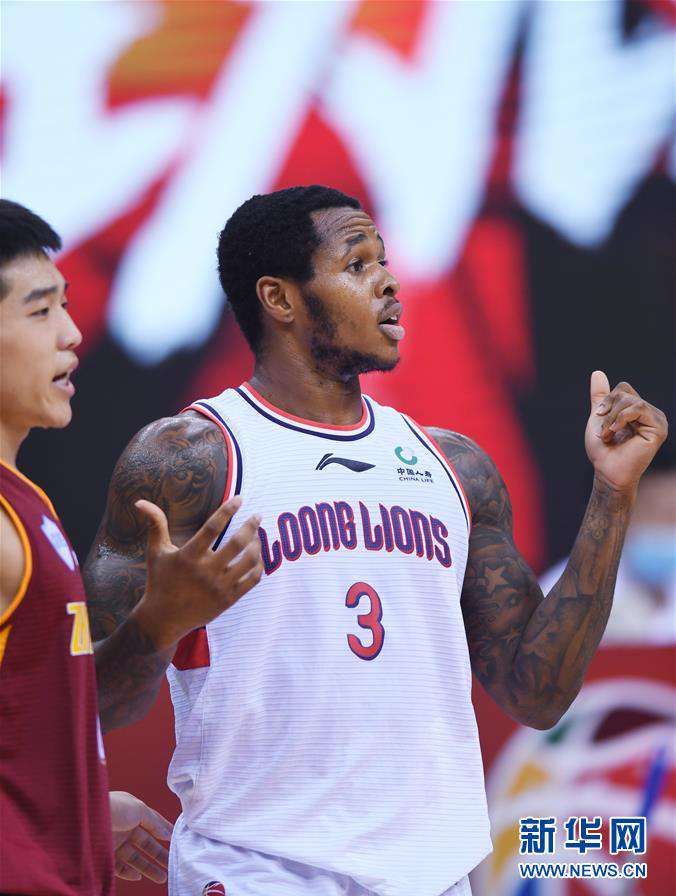 6月29日,时代中国广州队球员亨特在比赛中与裁判沟通。 当日,在青岛国信体育馆举行的2019-2020赛季中国男子篮球职业联赛复赛第一阶段比赛中,浙江稠州银行队以111比107战胜时代中国广州队。 记者李紫恒摄