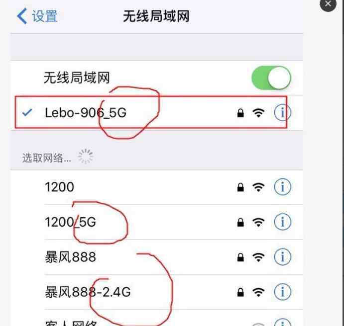 普通路由器是单频无线路由器,也就是默认只传输2.4Ghz频段的一个无线网络。但是和现在的双频路由器不同,一台路由器可以设置两个无线网络,默认一个在2.4G频段,另一个无线网络在5Ghz频段。我们可以看到双频路由器中有两个WiFi设置,而同一路由器中的两个WiFi无线网络可以在手机无线网络中搜索,如下图所示。