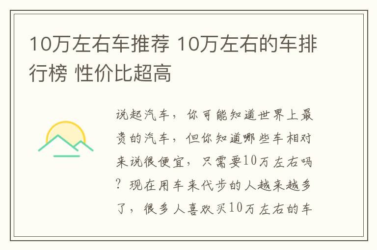 2.《10万左右车 10万左右的车排行榜 性价比超高》仅供读者参考,本网站未对该内容进行证实,对其原创性、真实性、完整性、及时性不作任何保证。