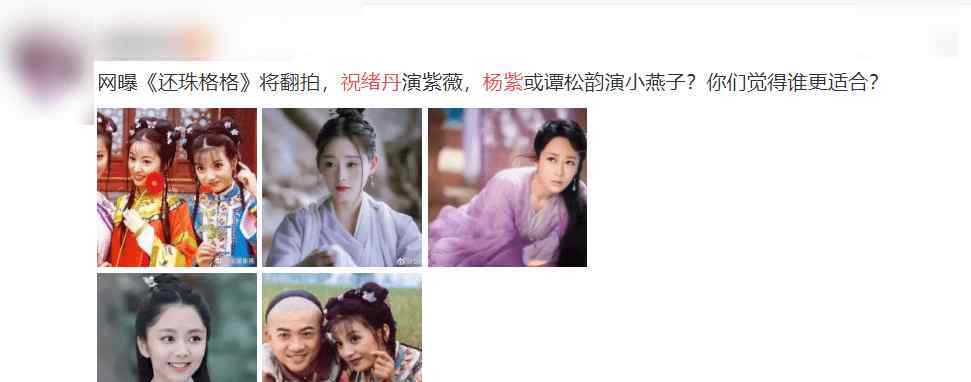 目前网上传言的阵容也很有吸引力,其中饰演小燕子的两位女演员是目前娱乐圈的顶尖流。
