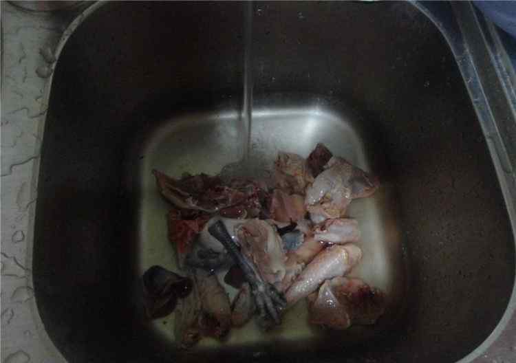1.将鸡肉洗净,切块。