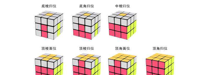 五阶魔方、六阶魔方、镜像魔方、二阶魔方都是用三阶魔方的旋转法。按照七步还原法还原三阶魔方是最简单的。还可以记住魔方的中心块和角块,或者记住每个面的颜色,根据颜色还原。