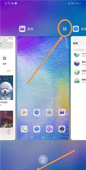 如果长时间不习惯按分屏,也可以点击后台操作按钮。这时除了自由切换手机软件外,右上角还有一个叠加框按钮。点击此按钮开始分屏。要关闭分屏,您也可以在两个应用程序之间使用白色按钮。