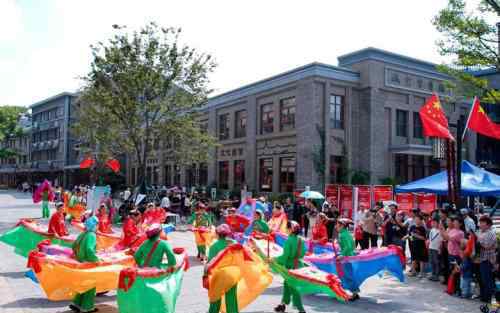 10月1日,杭州平遥老街红旗招展,老街上演了民间踩街、唱红歌、咏红诗等一系列节目。游客在节日的气氛中漫步。浙江新闻客户记者王建龙王天一摄