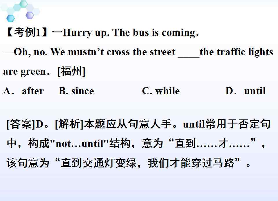 而“直到”表示“直到……”,当主句为肯定时,表示主句动作的结束时间;主句为否定时,强调主句动作的开始时间。